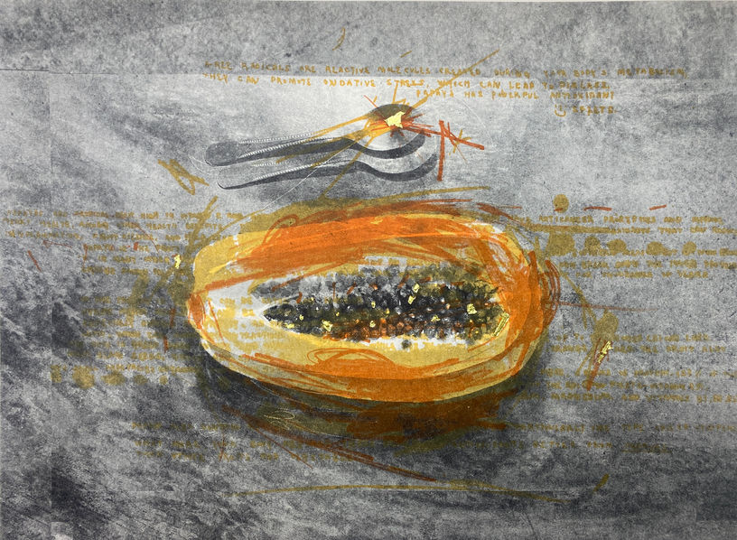 작업에 주로 등장하는 대상인 열매는 신체를 통과하여 그 내부와 외부에 작용하고, 비로소 몸의 안녕(Physical Stability)을 준다. 열매들의 각기 다른 성장과 저마다 다른 생김은 그 자체로도 매우 신비롭다. 각기 다른 생김새로 성장하는 열매는 삶의 상처와 회복을 차곡차곡 쌓아서 단단하게 만드는 작업 과정, 그리고 삶을 대하는 본인의 태도와 매우 닮아 있다. 그림으로는 채울 수 없는 빈 형태의 경우, 대상의 주변은 글이나 흔적으로 채워지는데, 그 위에 또 다른 기호나 본인만의 텍스트로 겹쳐 쓰기도 하면서 그것은 지극히 사적인 미적 개인어(Aesthetic idiolect)로 완성된다. 본인은 시각 예술가로서 나의 작품에 등장하기 이전의 ‘Objects 대상들’ 그 자체를 나름의 타당성이 있는, 다른 방식들로 연구하고 있다. 본인은 언제나 그림으로 나의 삶을 들여다보면서 자연스럽게 자전적 그림 그리기를 많이 하고 있고, 대상을 여러 다른 방식으로 보는 현재의 이 연구는 본인에 대한 깊은 고찰로 이어지기때문에 더욱